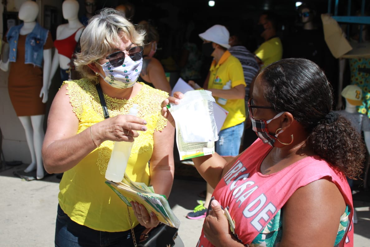 500 kits de higienização (álcool em gel, luvas e máscaras) para os profissionais do transporte alternativo e comerciantes do Mercado Municipal;